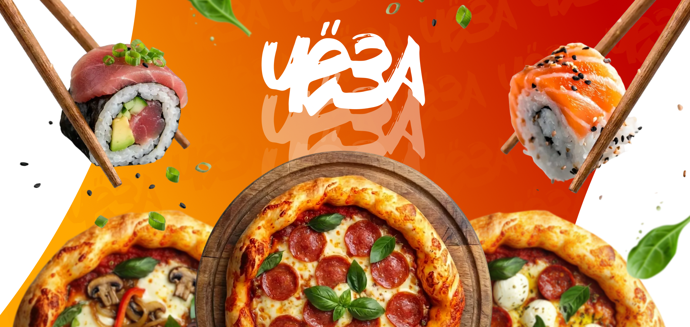 Рис, водоросли нори, лосось, окунь, сыр филадельфия, кляр темпура