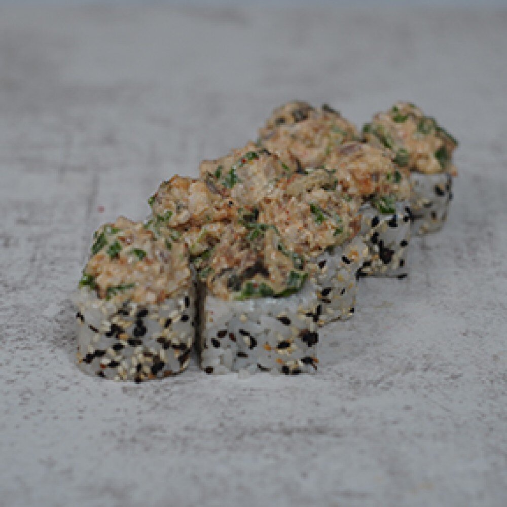 Рис, водоросли нори, сливочный сыр, кунжут, зелёный лук, угорь, спайси соус