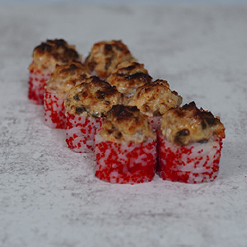 Рис, водоросли нори, сливочный сыр, огурец, икра тобико, тунец, угорь, спайси соус